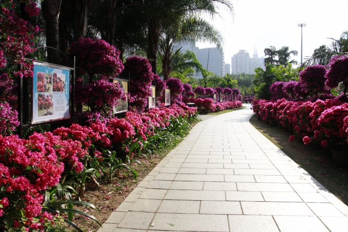 11月16日,第十五屆勒杜鵑市花展與深圳市第八屆公園文化節(蓮花山公園會場)同時開展。本屆市花展與文化節將“綠色低碳”、“環保生活”、“垃圾減量分類”的理念融入到各景點和活動中,持續到月底。本屆花展突破了往屆僅在椰風林景區的局限,將展區拓展到從市民中心到公園風箏廣場的連廊上,所以展出的花卉數量,品種有明顯的增加。據悉此次市花展共展出70個品種的簕杜鵑,參展的各種園林花卉達七萬余盆,將蓮花山的整個展區妝點得美輪美奐。此次勒杜鵑市花展,苗木由我司提供。