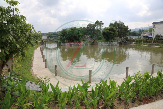園林建筑、水池、鋪裝、綠化、亭臺樓榭等。