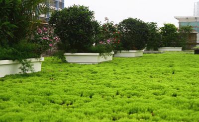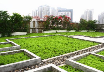 本項目采用立體綠化新技術(shù)——自動調(diào)濕式綠化技術(shù),該技術(shù)獲得“世界立體綠化創(chuàng)新技術(shù)金獎”,其核心是讓植物自己對用水量進(jìn)行管理,植物不回因為缺水影響生長,也不會因為澆水過多而澇死,具備自動調(diào)濕、雨水收集、防水防滲等一系列功能,節(jié)水率高達(dá)85%。屋頂四周采用自動調(diào)濕集成種植箱,種植小喬木、灌木、花卉等,營造豐富的屋頂花園景觀。基質(zhì)層厚度只需10-25cm,較小的荷載讓老建筑的屋頂綠化改造提供了可能。