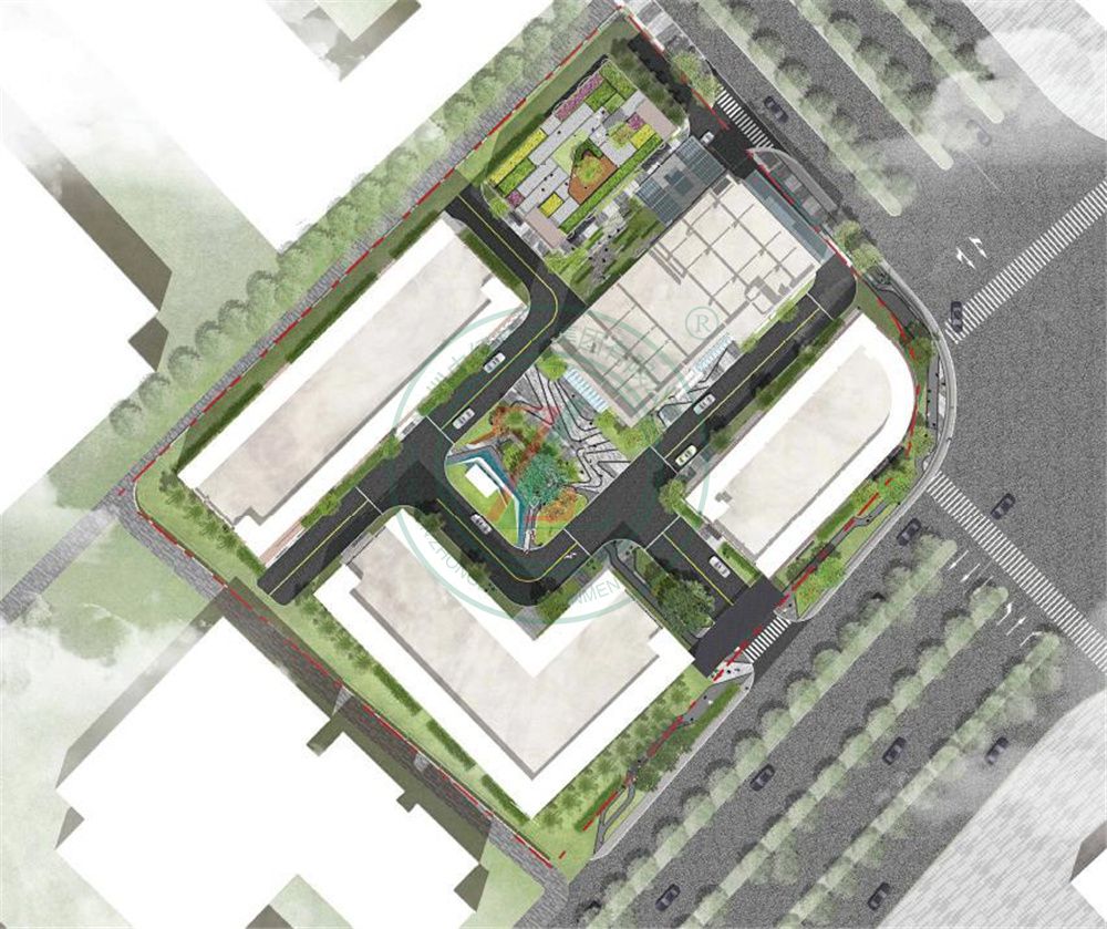 項目緊鄰鵝埠鎮,生活、購物、教育、醫療設施齊全,優勢明顯;周邊數個住宅小區形成住宅氛圍,租住便利;附近有邊溪公園、南華寺等綠地公園,提供休閑活動空間。設計將“海浪”理念融入景觀中,用海浪造型的鋪裝襯托建筑,營造出動感簡潔的現代景觀體驗感。在廠區外圈融入經過提煉簡化的 “海浪”元素,簡潔大氣且具有引導性。“海浪”元素將景觀與建筑完美融合,地塊與外界自然接駁。將中安視科技園打造成集辦公、住宿、景觀、體驗于一體的商業綜合體,形成深汕特別合作區別具一格的商業元素。