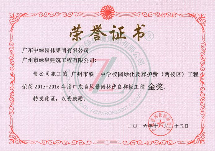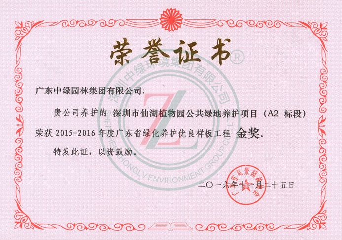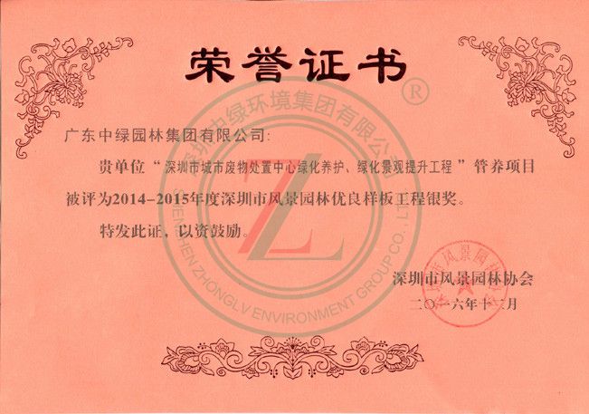 深圳中綠環境集團有限公司 - 走進中綠 - 項目榮譽