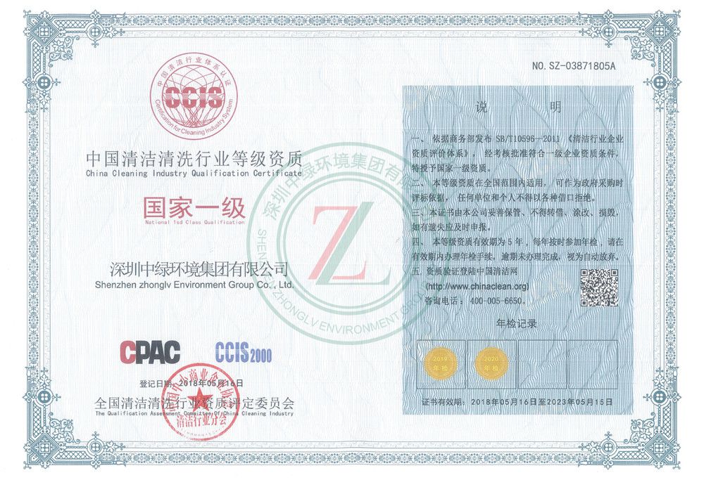 中國清潔清洗行業等級資質國家一級