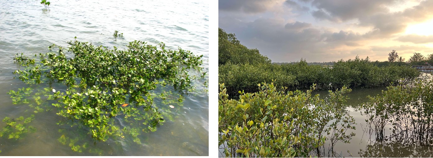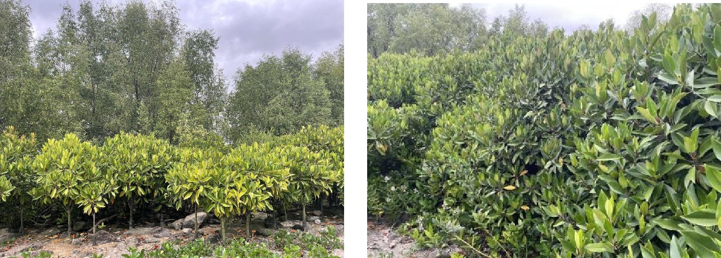 Tree, bark dark gray. The leaves are thick and smooth, the flowers are solitary red, with purple bell calyx tube; viviparous, the hypocotyl is dark green, the stubby wall is straight, and the tip turns red when mature. It has developed geniculate respiratory roots and is mostly scattered in the continental margin area at high tide level.